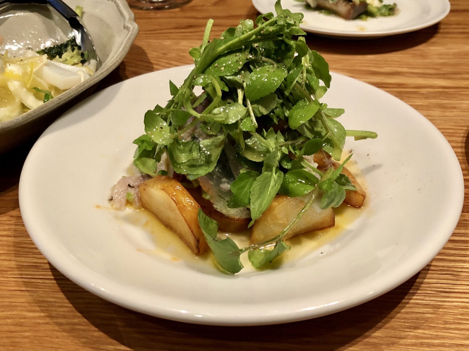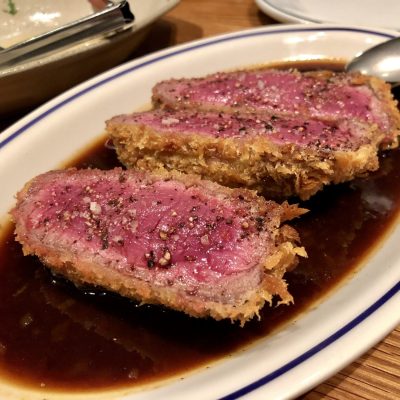 It was the first time for me to visiting this restaurant in downtown area. Always wonder what’s a good food to order for the first time. For me, one should be recommended or most popular according to the server, so I ordered beef cutlet. Other one should be salad or veggies something which could match with the first one. Pairing the right food with the right wine would be interesting and always learn something new.