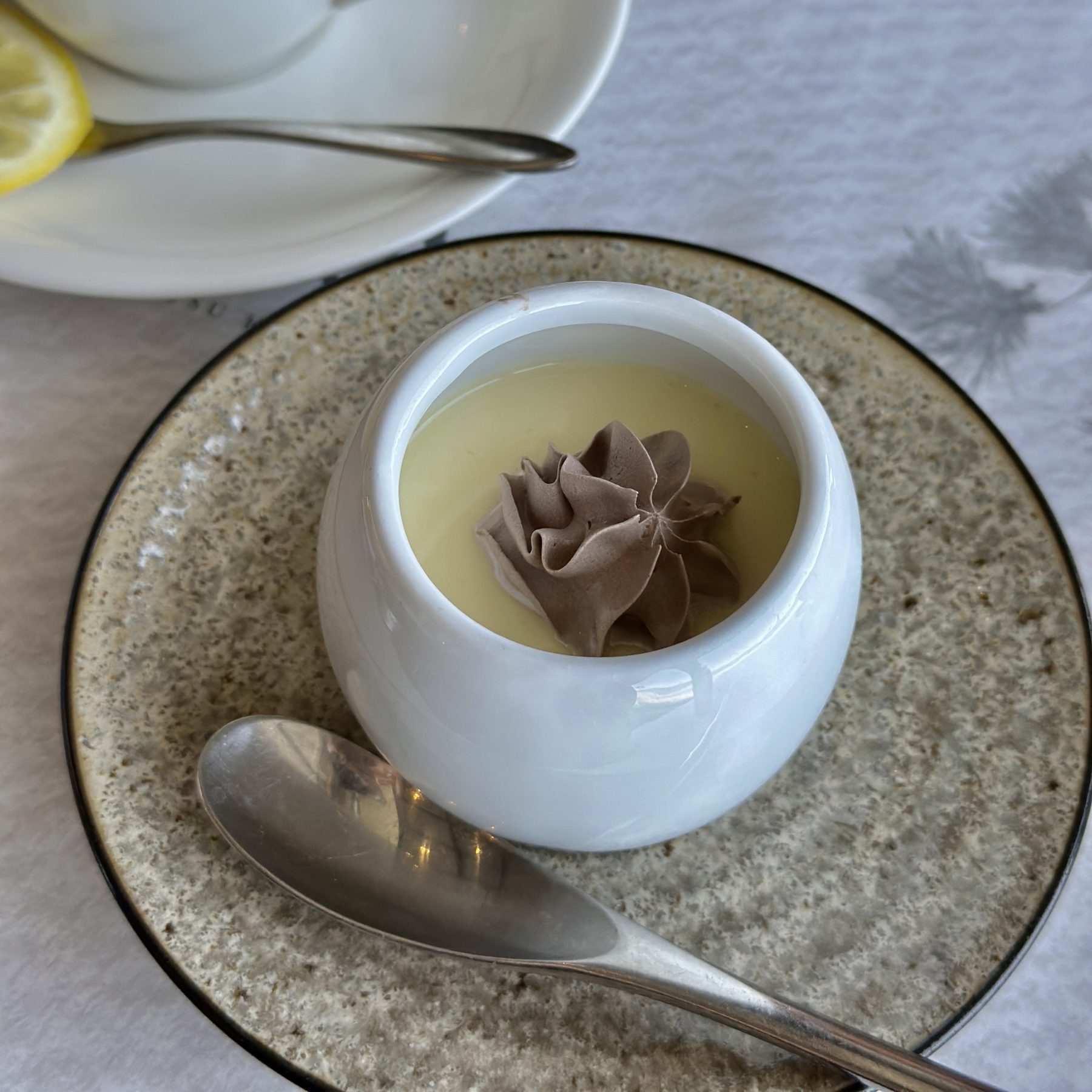 The weather was gorgeous, so we drove up to the east area and had lunch at a hotel. Since I’m gluten-free, it’s sometimes hard to find suitable options, but this restaurant was thoughtful and accommodating. Also, I’ve been able to enjoy a little dessert these past few months, which makes me happy.